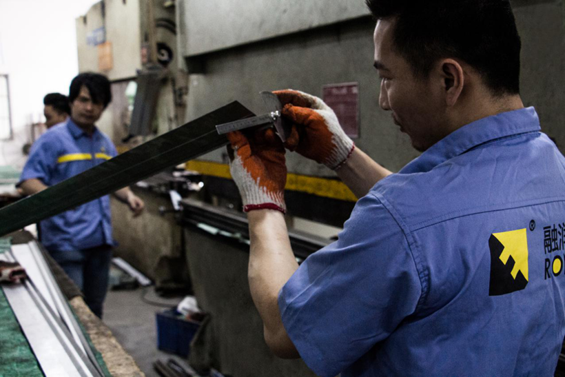 在融润,一个展柜的成品需要经历“木制品车间、五金车间、玻璃车间、喷烤漆车间、石材车间、亚克力车间……”等车间的几十道工序。看着虽然简单,但是件件都是要匠人讲究精准,需要常人难有的耐心和注意力。