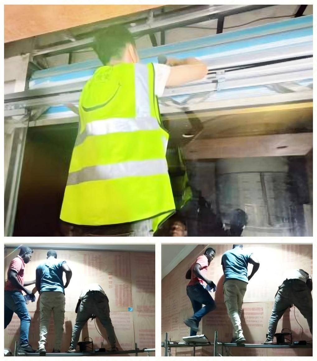在非洲期间,团队经历了诸多挑战。当地生活条件较为落后,停水停电成为家常便饭。有一次,在项目最关键时期,工地连续三天断电。面对困境和紧迫的工期,团队成员没有退缩,他们动用自备的发电机,争分夺秒,昼夜不停地轮流作业,最终保证了项目进度。非洲阿布说:“以前,项目施工,我们都是每天做完就走了,这次和融润团队每天施工完,都会组织我们复盘一下再走,看看当天有没有问题需要解决,明天怎么安排等等。这不仅提高了工作效率,还让我们学到了很多东西。”